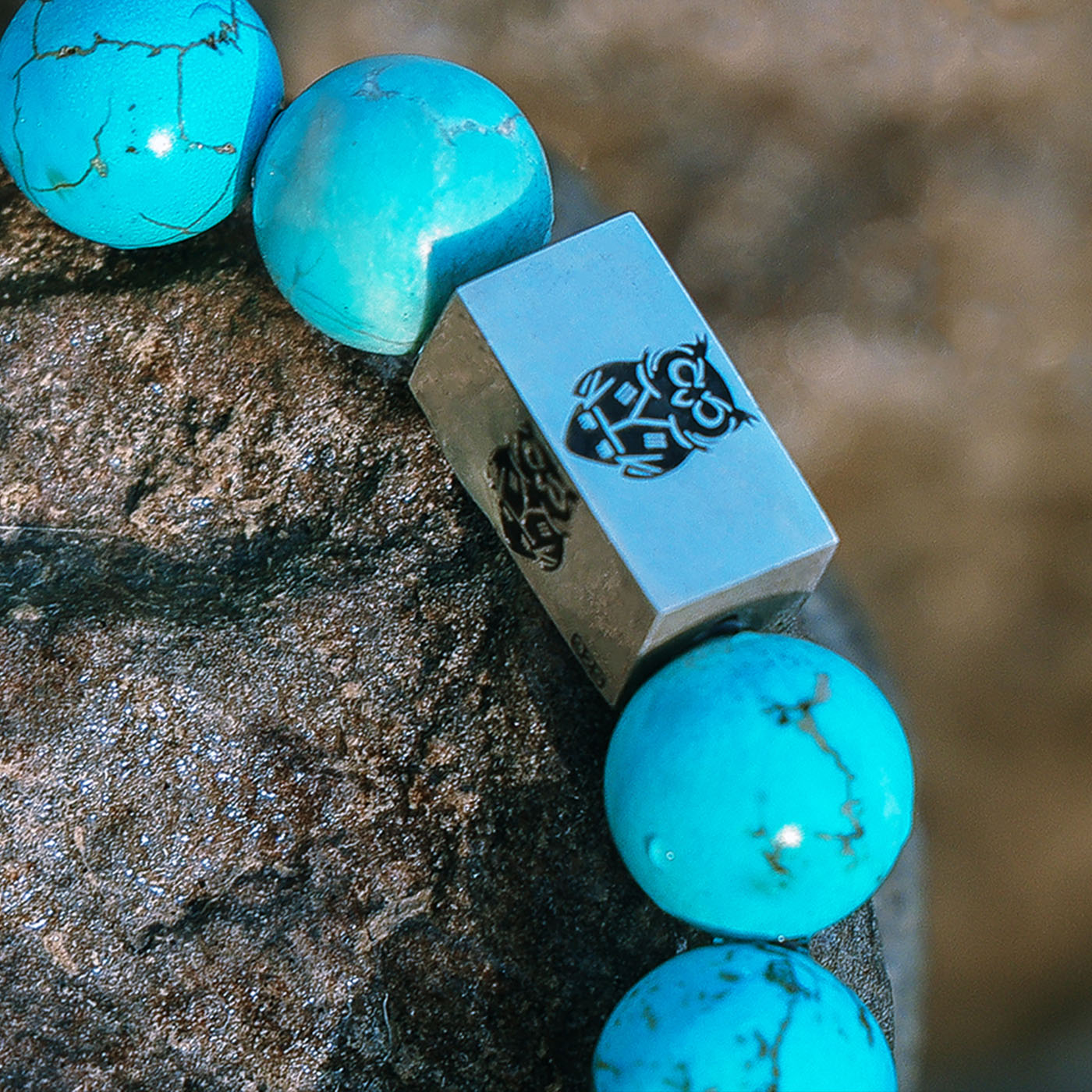 სამაჯური დამზადებულია ბუნებრივი ქვებისგან. ბრენდინგი დამზადებულია ხელით 925 სინჯის ვერცხლისგან, რომელზეც გამოსახულია ჩოხოსანი ბუ.