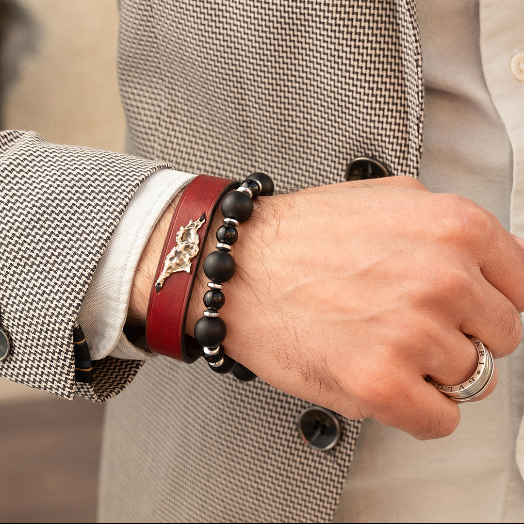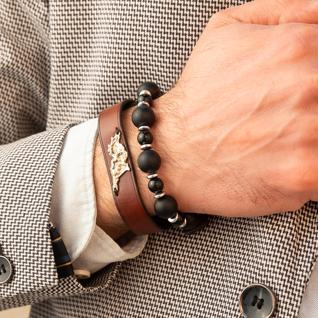 სამაჯური დამზადებულია ბუნებრივი ქვებისგან. ბრენდინგი დამზადებულია ხელით აკაციის ხისგან.